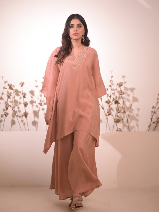 Ayaana Rose Gold Embroidered kaftan Palazzo Set