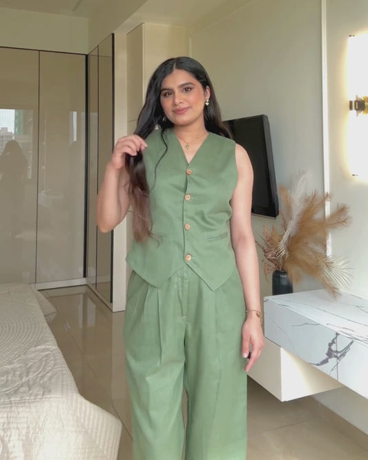 Sage Green Vest Pant Co Ord Set