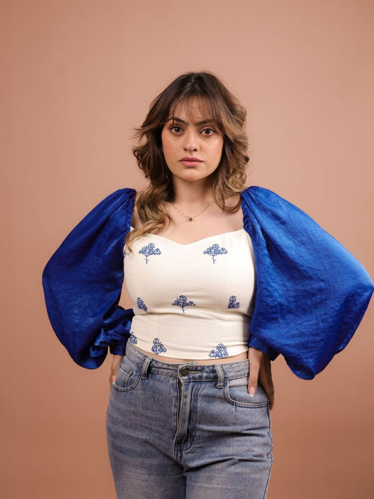 Yarrow Blue Satin Crop Top
