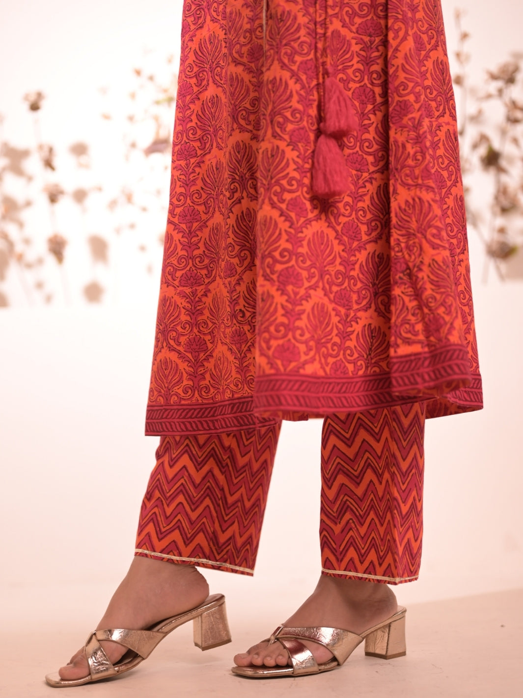 Amara Pink Orange Block Printed Suit Set
