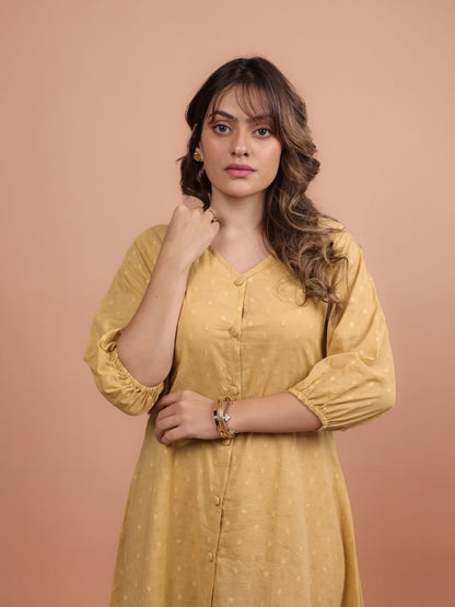 Upgrade your summer wardrobe with this Mustard Cotton Tiered Midi Dress. Made with 100% cotton fabric, this playful dress is perfect for those warm days. The tiered design adds a stylish touch while the vibrant color makes a statement. Embrace the season with this must-have dress!