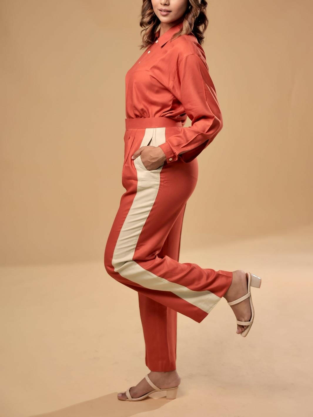 Look sunshine-ready (even on a cloudy day) with this Sundown Pant Co Ord Set! Its rust color, relaxed fit, and side patch make it the perfect chic wear for those not-so-sunny days. Soft rayon twill fabric ensures it'll be comfy, too - An easy-going vibe? Gotcha covered!
